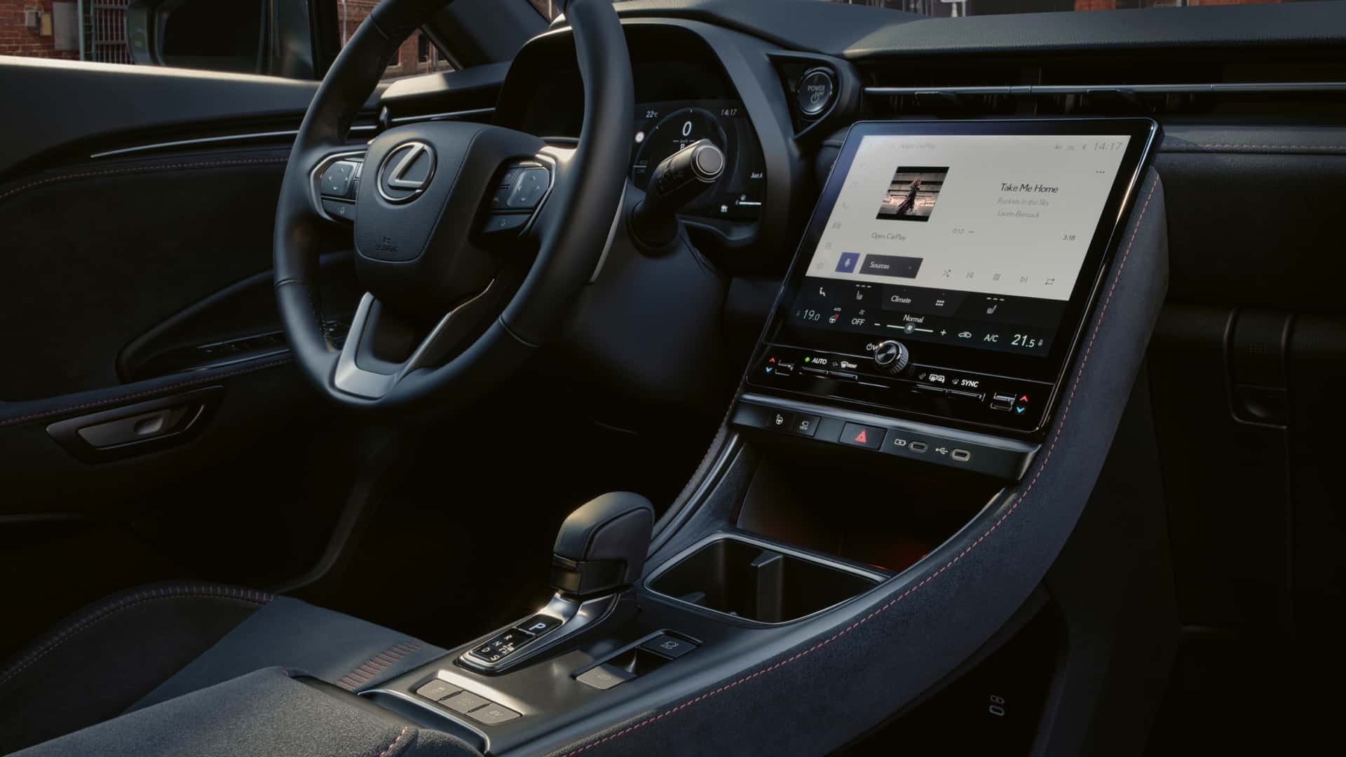 Wnętrze Lexusa to klasa premium. Konsola wyposażona jest w 12,3-calowe cyfrowe zegary oraz centralny ekran o przekątnej 9,8 cala. Najwyższe opcje wyposażenia mają system audio Mark Levinson z 13 głośnikami i subwooferem.